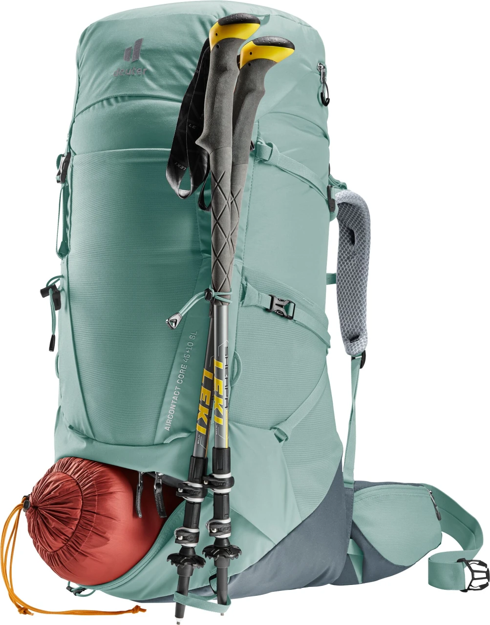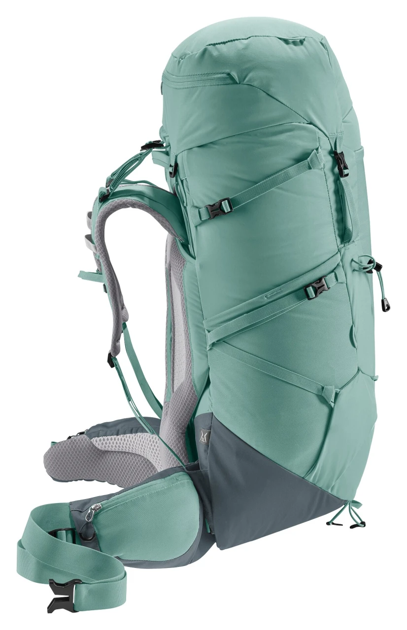 Komfortables Multi-Talent dank abnehmbarer Kompressionsriemen, die je nach Einsatz und Ausrüstung so modifiziert werden, dass unterschiedlichste Anbringungen von Gegenständen möglich sind. Der Tragekomfort wird durch das Aircontact Rückensystem mit Air Spacer Mesh und großem Belüftungskanal, die ergonomischen ActiveFit Schulterträger und den verstellbaren Brustgurt sichergestellt. Für eine optimale Lastverteilung und -kontrolle auf langen Strecken sorgen der Y-Rahmen, die beweglichen, passgenauen Hüftflossen und das ergonomische, trapezförmige Lumbalpad