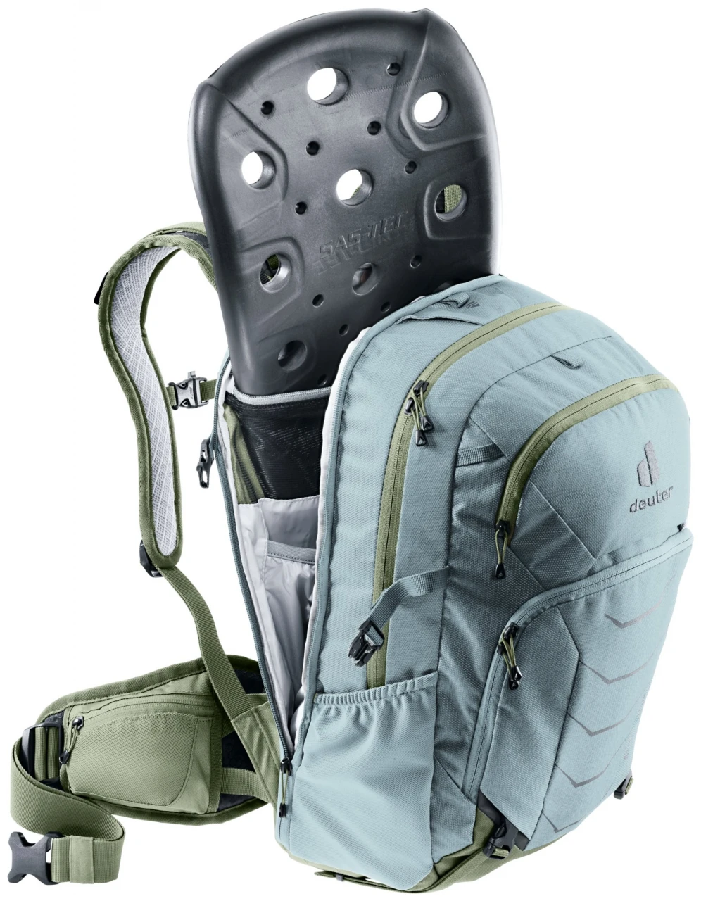 Mit dem neuen TÜV/GS zertifizierten Protektor-Rucksack Attack sind ambitionierte Bikerinnen auf anspruchsvollen Trails bestens geschützt. Der herausnehmbare Rückenprotektor, der nach Deformation die ursprüngliche Form wieder annimmt, bietet zusammen mit dem für die weibliche Anatomie entwickelte Tragesystem einen Aufprallschutz, der dem Standard für Motorradfahrer entspricht.
