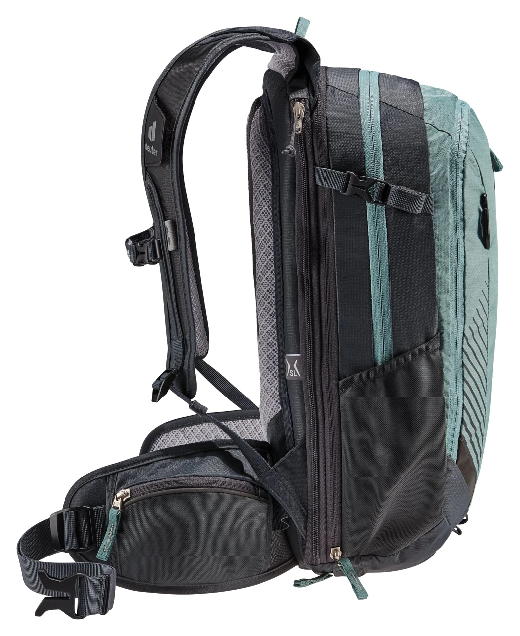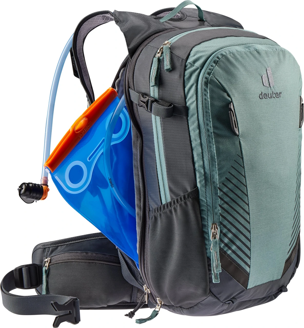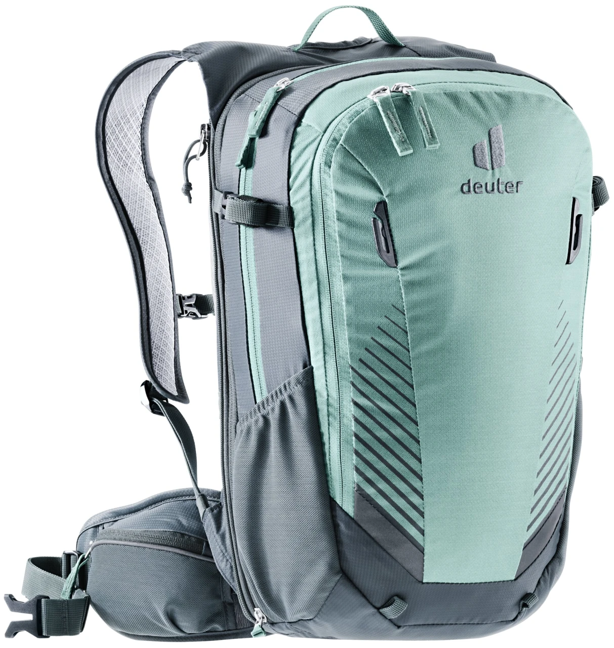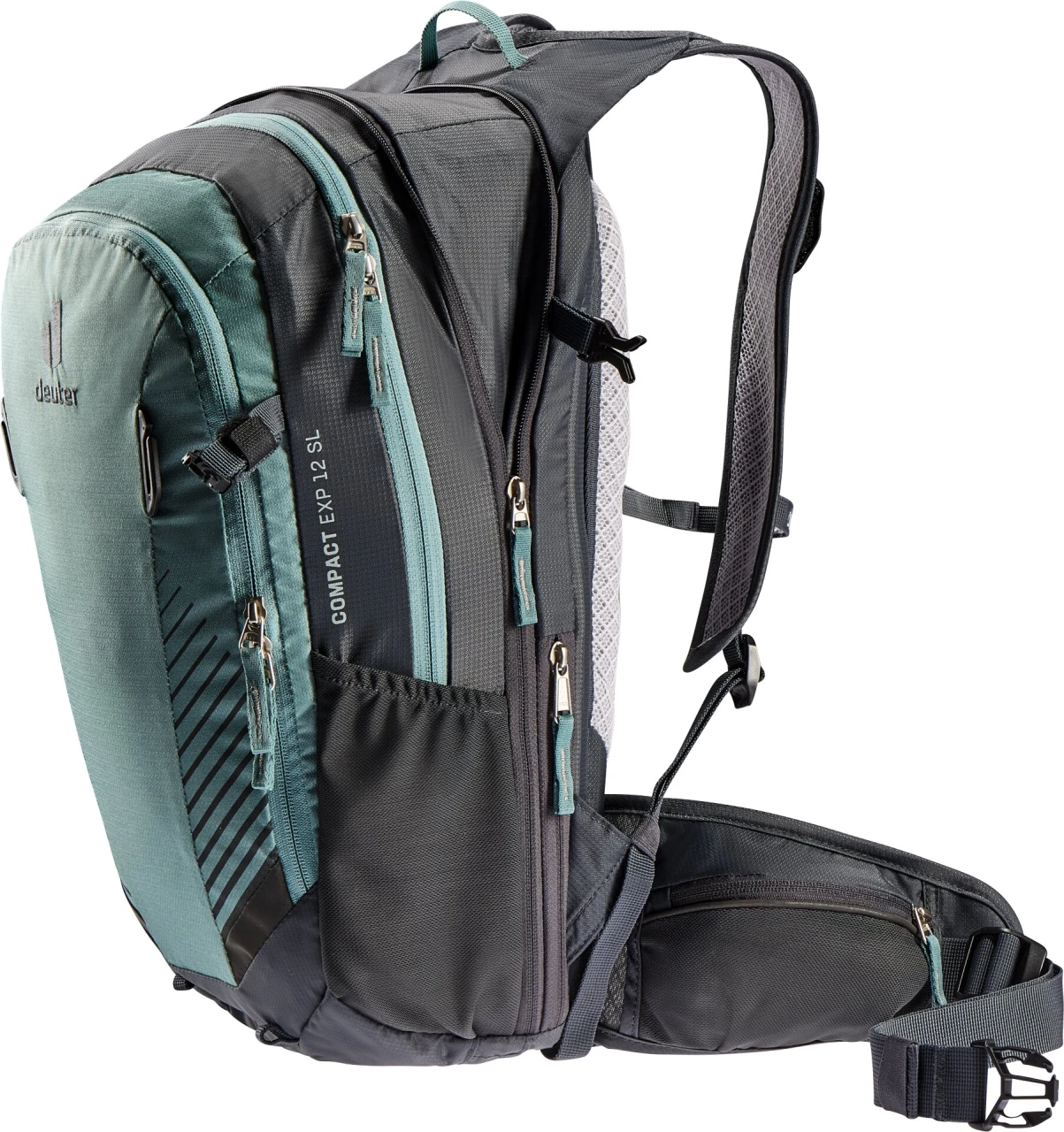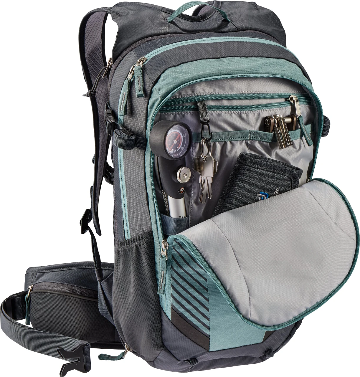 Der Compact ist ein Bike-Rucksack für Mountainbiker, der bequem und fest auf dem Rücken sitzt. Er besticht vor allem mit seiner perfekten Ausstattung: Er hat ein extra Fach für die Trinkblase, ein separates Fach für das Smartphone, ein übersichtliches Werkzeugfach, zwei Reißverschluss-Taschen auf den Hüftflossen und zwei elastische Seitentaschen. Außerdem besteht die Möglichkeit das Volumen des Rucksacks zu erweitern. Der Halbschalenhelm kann ganz einfach vorne in die Befestigungs-Clips gehangen werden, während sich die seitlichen Kompressionsriemen zur Fixierung des Fullface-Helms eignen.