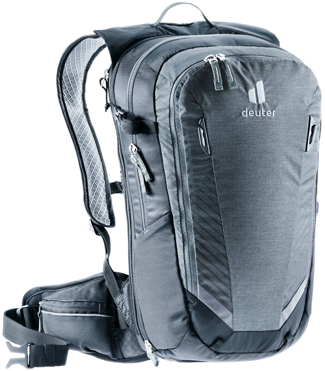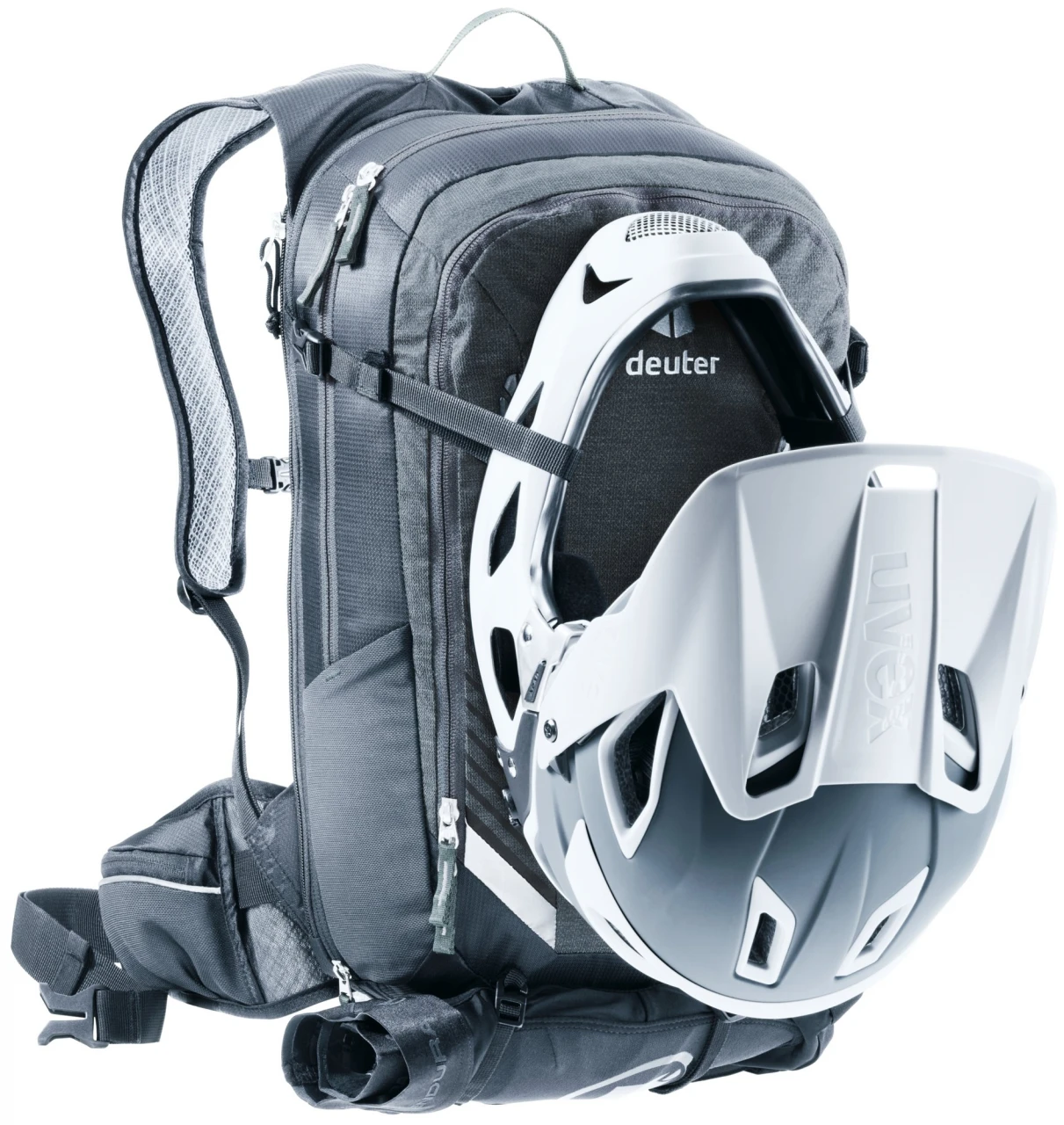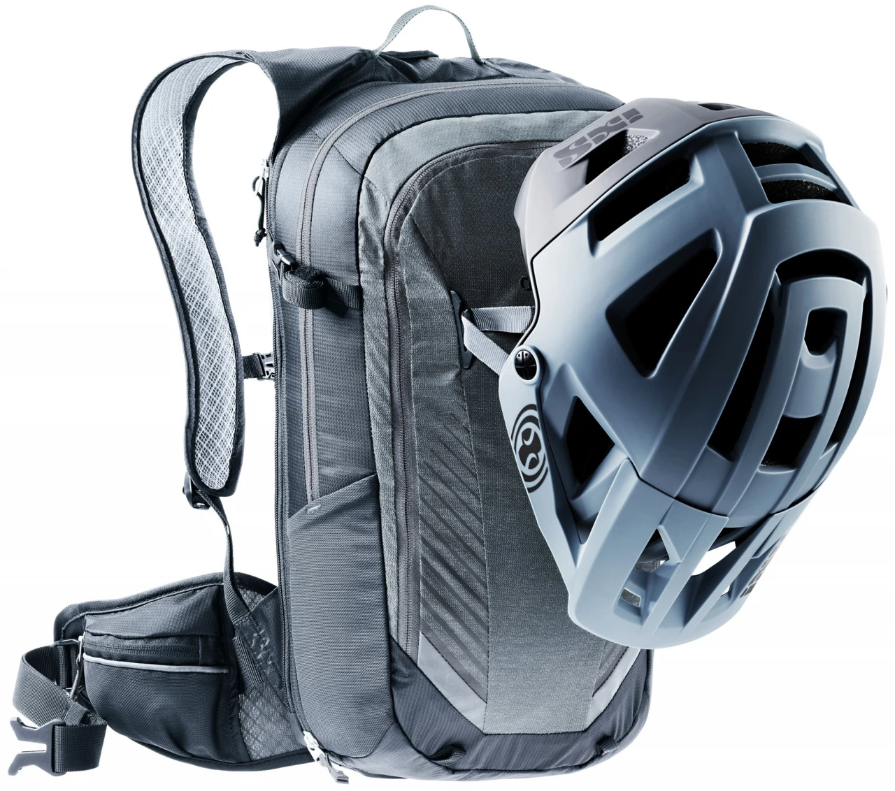 Der Compact ist ein Bike-Rucksack für Mountainbiker, der bequem und fest auf dem Rücken sitzt. Er besticht vor allem mit seiner perfekten Ausstattung: Er hat ein extra Fach für die Trinkblase, ein separates Fach für das Smartphone, ein übersichtliches Werkzeugfach, zwei Reißverschluss-Taschen auf den Hüftflossen und zwei elastische Seitentaschen. Außerdem besteht die Möglichkeit das Volumen des Rucksacks zu erweitern. Der Halbschalenhelm kann ganz einfach vorne in die Befestigungs-Clips gehangen werden, während sich die seitlichen Kompressionsriemen zur Fixierung des Fullface-Helms eignen.