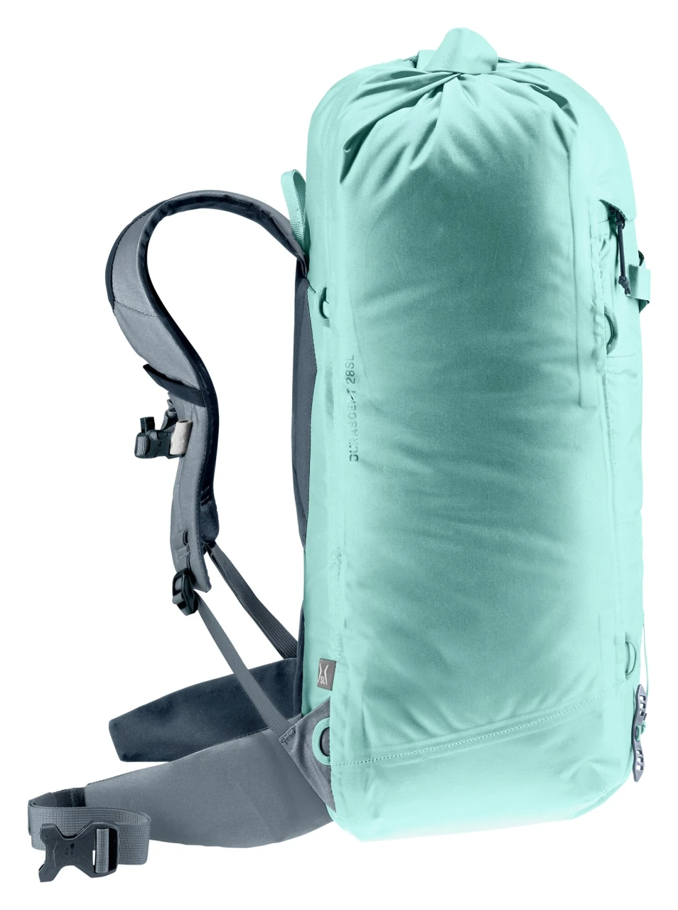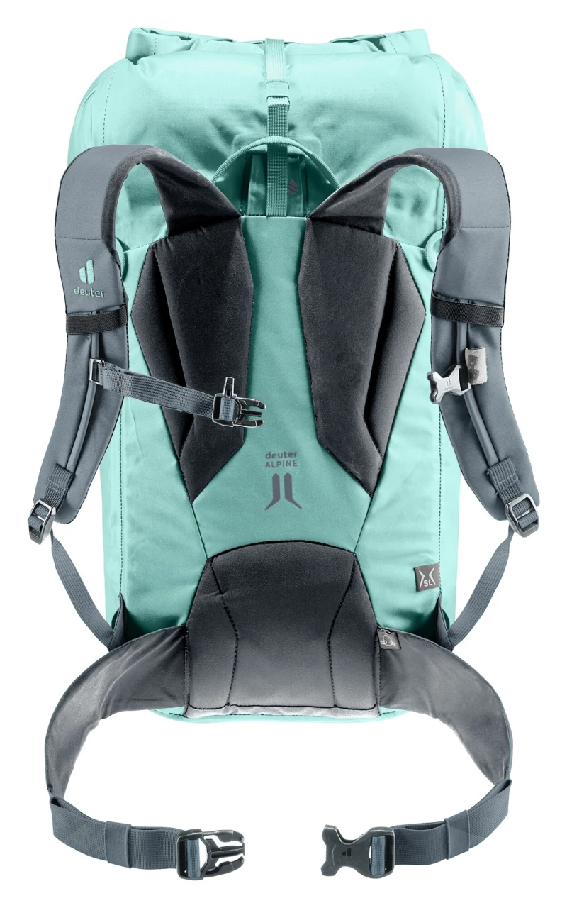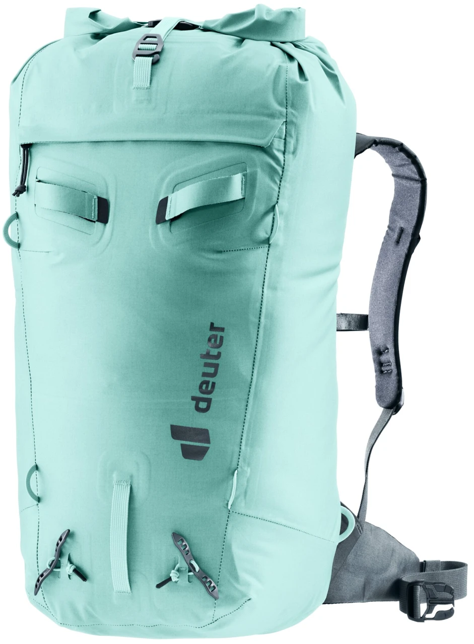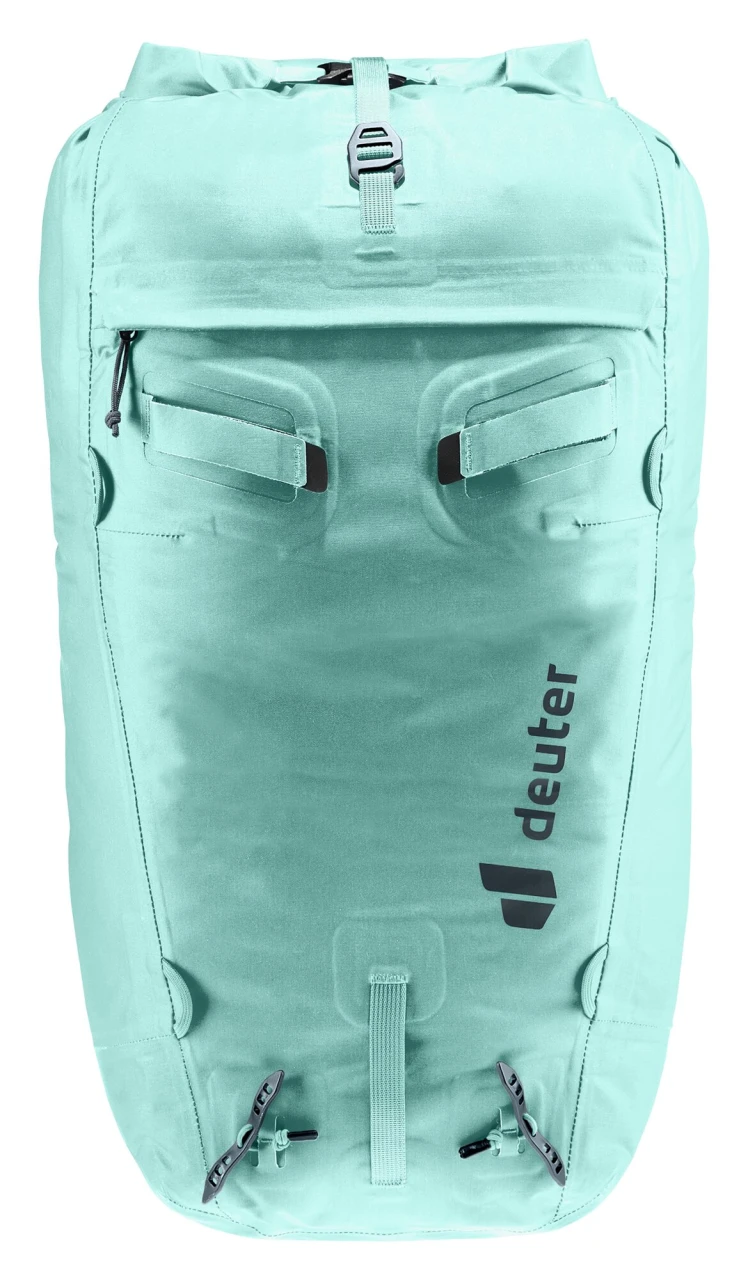 Strapazierfähiges Material, getapte, wasserdicht versiegelte Nähte, TPU beschichtete und mit einem Flap geschützte Reißverschlüsse sowie die Rolltop-Deckelkonstruktion schützen den Inhalt des Mountaineering-Rucksacks sicher vor dem Eindringen von Nässe. Zudem sorgen durchdachte Befestigungsschlaufen und seitlich verstaubare Hüftflossen nicht nur für ein herausragendes Komfort-Gewichts-Verhältnis, sondern ermöglichen Bergsportlerinnen auch das Tragen eines Gurtes und damit den vielseitigen Einsatz des wasserdichten Rucksacks.