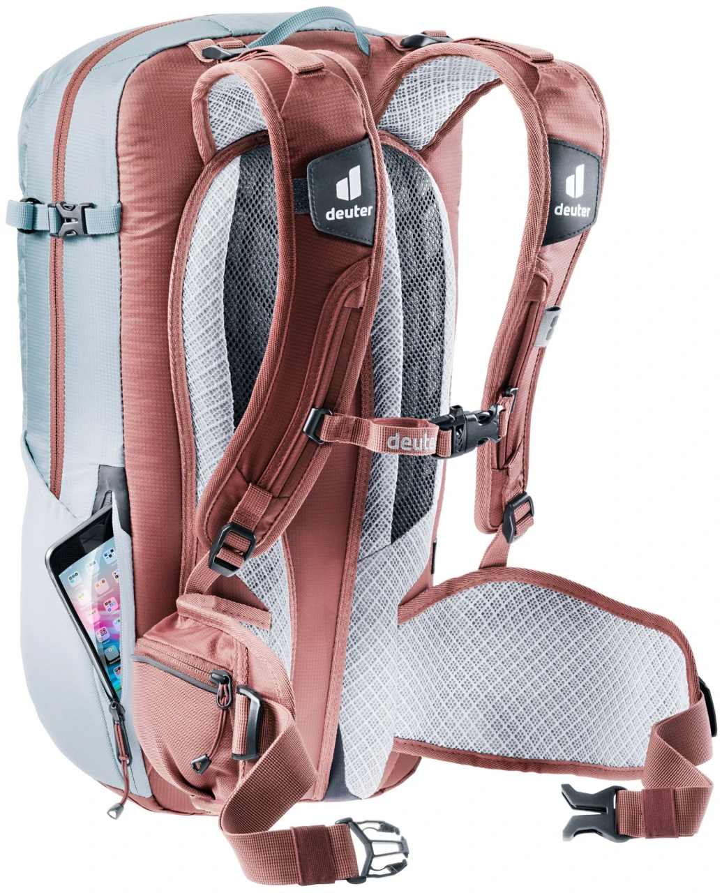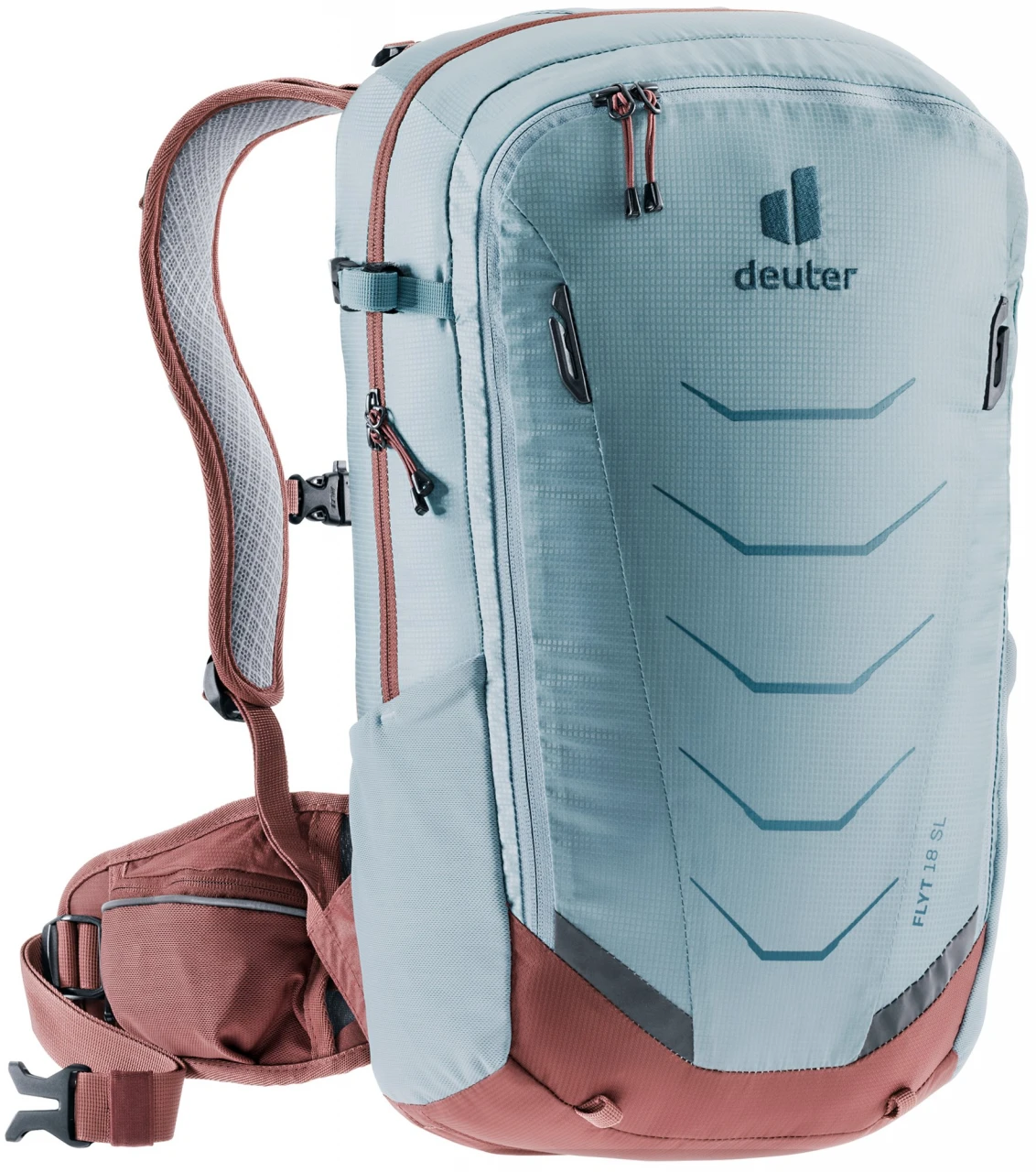 Weniger ist mehr – der gewichtsoptimierte, TÜV/GS zertifizierte Protektor-Rucksack Flyt SL ist auf die essenziellen Features reduziert. So sorgt ein leichter, herausnehmbarer Rückenprotektor für Schutz bei Stürzen. Zur Fixierung des Helms gibt es Clips außen am Rucksack (Halbschalen-Helm) oder seitliche Kompressionsriemen (Fullface-Helm). Zwei verstaubare Riemen am unteren Ende des Rucksacks ermöglichen zudem die Befestigung der Bike-Protektoren. Der speziell für Frauen verkürzte Rücken mit dem bewährten, leichten Airstripes-System sorgt zusätzlich für ausreichende, angenehme Belüftung.