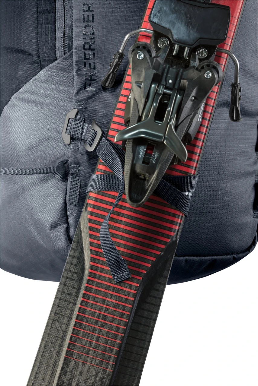 Der Freerider Pro ist mit seiner vielseitigen Ausstattung genau richtig für Mehrtagestouren in verschneiten Bergen. Ein Highlight des Freerider Pro ist das neue Rolltop. Denn damit kannst du das Volumen um ca. 10 Liter erweitern. Außerdem befindet sich an dem Rolltop ein verstaubarer Riemen, mit dem man zusätzliches Gepäck oder ein Seil fixieren oder das Rolltop selbst komprimieren kann. Wenn du deine Skier, Schneeschuhe oder das Snowboard in bestimmten Passagen nicht benötigst, kannst du sie ganz einfach und sicher außen am Rucksack – mit den extra dafür vorgesehenen Befestigungsriemen – fixieren. Skier lassen sich diagonal oder in A-Form, Snowboard und Schneeschuhe vertikal befestigen. Außerdem dienen die flexibel einsetzbaren Riemen zur seitlichen Kompression.