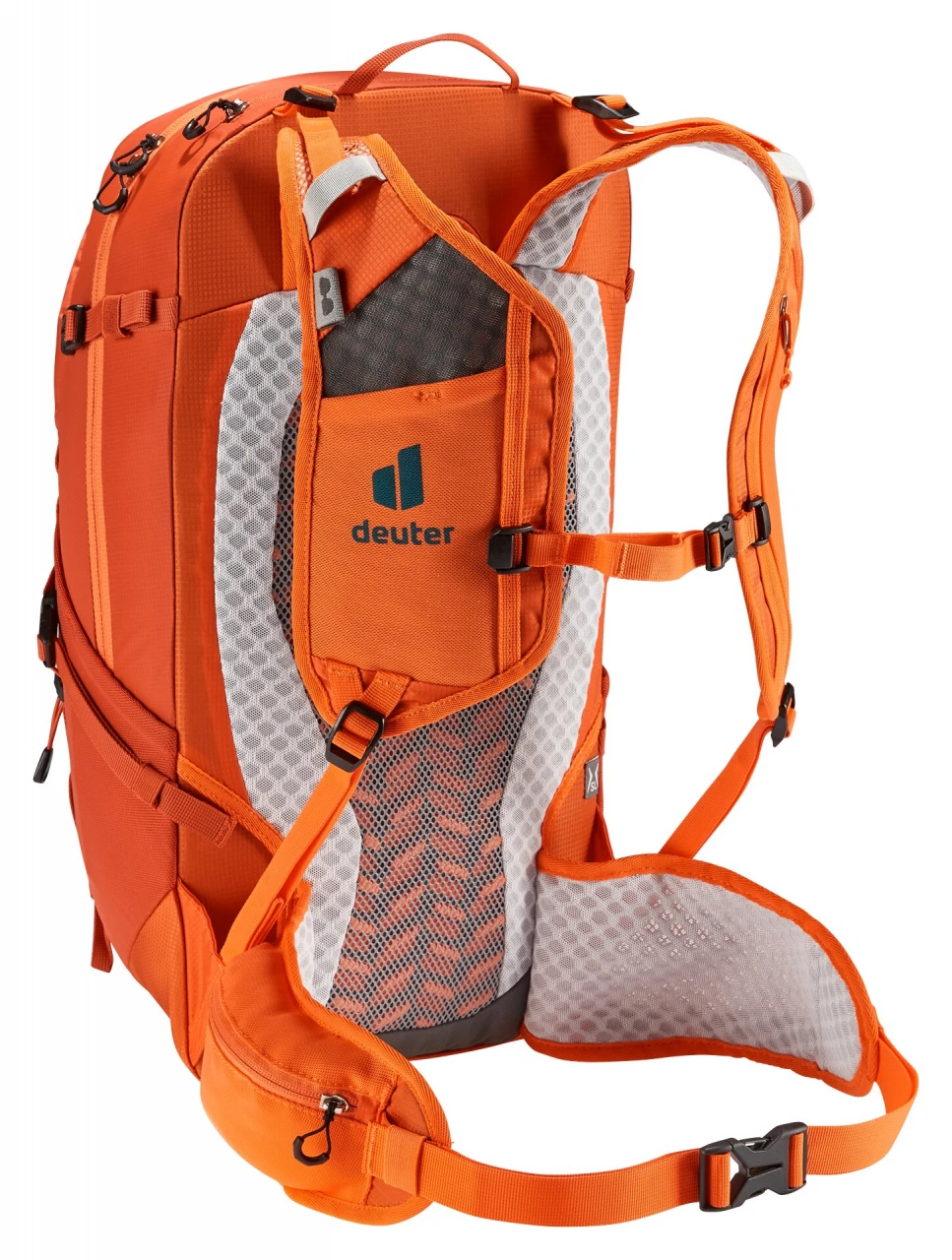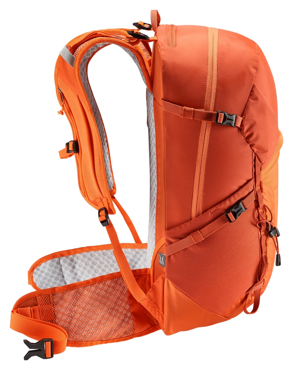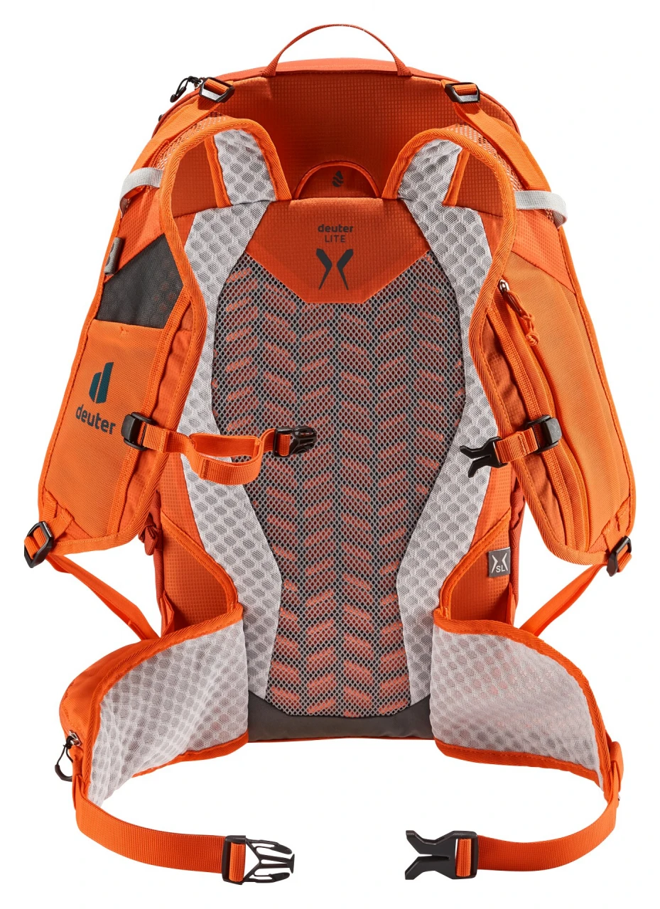 Leicht, schnell und nachhaltig am Berg dank bewährtem Lite Tragesystem, westenförmigen, perforierten Schulterträgern, anschmiegsamen Hüftflossen, stufenlos verstellbarem Brustgurt und 100% recyceltem und bluesign® zertifiziertem Hauptmaterial. Zudem sorgen seitliche Kompressionsriemen für die Minimierung von Auf- und Abbewegung der Ladung beim Laufen und damit für eine uneingeschränkte Bewegungsfreiheit. Und die am Schulterträger integrierte Tasche bietet genügend Platz für alles, was auf schnellen Hikes griffbereit sein soll.