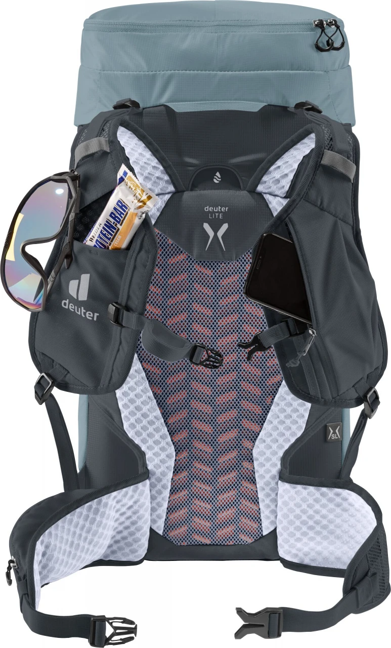 Leicht, schnell und nachhaltig am Berg dank bewährtem Lite Tragesystem, westenförmigen, perforierten Schulterträgern, anschmiegsamen Hüftflossen, stufenlos verstellbarem Brustgurt und 100% recyceltem und bluesign® zertifiziertem Hauptmaterial. Zudem sorgen seitliche Kompressionsriemen für die Minimierung von Auf- und Abbewegung der Ladung beim Laufen und damit für eine uneingeschränkte Bewegungsfreiheit. Die am Schulterträger integrierte Tasche bietet genügend Platz für alles was griffbereit sein soll, das geräumige Reißverschluss-Deckelfach für größere Ausrüstung.