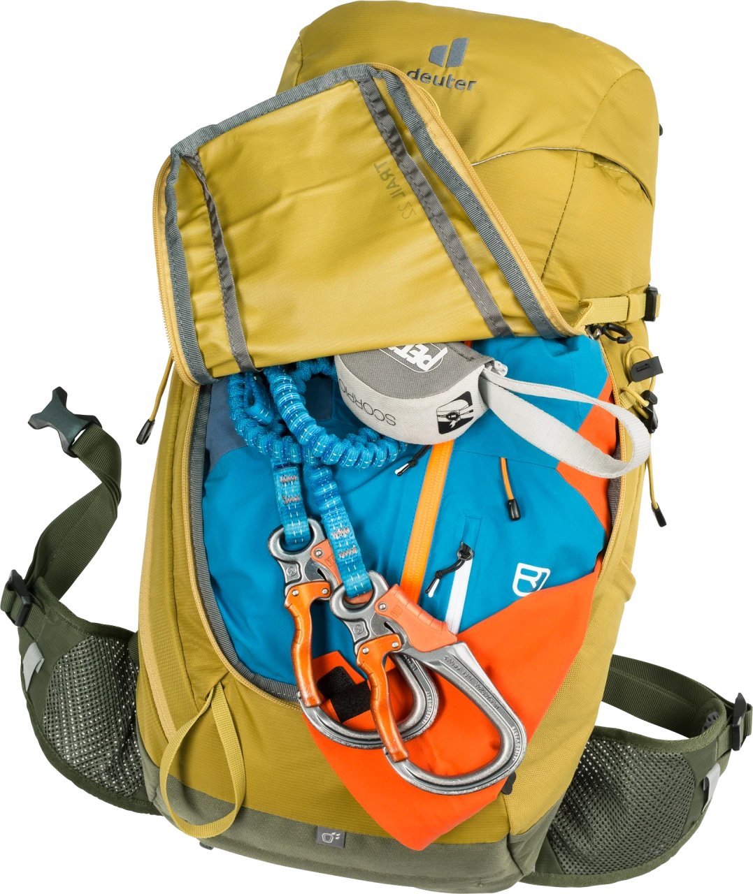 Der cleane, leichte Rucksack ist sehr vielseitig – unter anderem zeigt er sich am Klettersteig oder bei sportlichen Wanderungen als perfekter Begleiter. Mit dem Aircontact Rückensystem ist bester Tragekomfort garantiert und durch innovative Details wie die Karabiner-Fixierung am Schulterträger wird der Trail zum Klettersteigrucksack mit Expertise.
