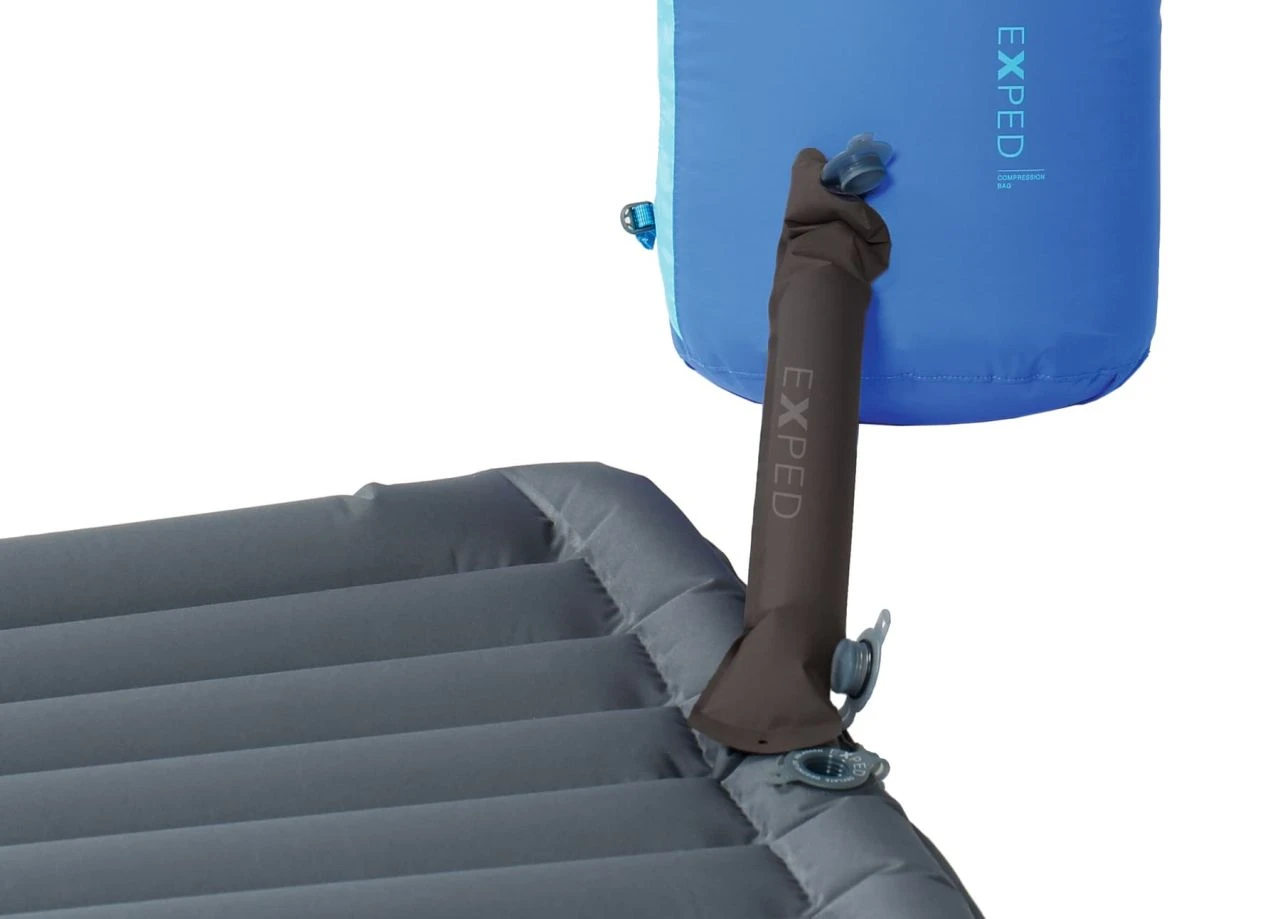 Der praktische Schnozzel ist extrem leicht, ist aus rezykliertem Material hergestellt und verwandelt jeden EXPED Drybag mit Fachventil in einen praktischen Pumpsack. So lässt sich die Matte schnell und feuchtigkeitsfrei Aufblasen.