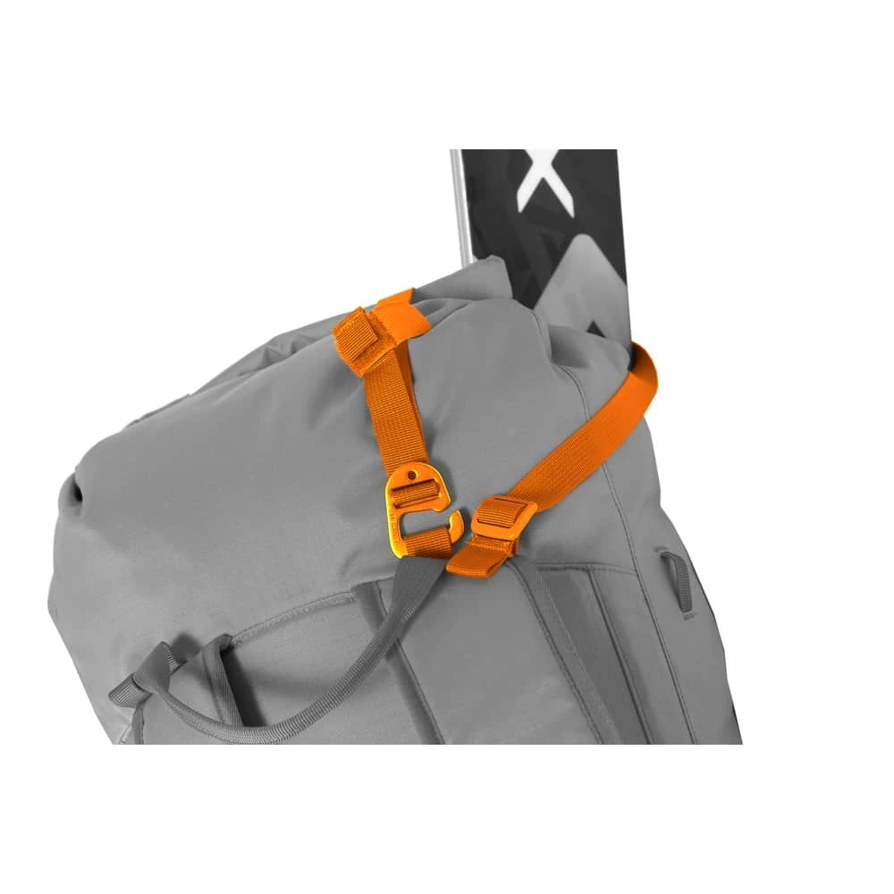 Der dicht abschliessende Rolltop-Verschluss sowie ein praktischer Seitenzugang bieten schnelle Zugriffsmöglichkeiten ins Hauptfach. Das weisse Innenmaterial sorgt für Überblick und schnelle Orientierung. Zwei praktische Daisy Chains an der Aussenseite bieten Befestigungsmöglichkeiten für die Alpin- und Skiausrüstung. Eine wetterfeste, frontseitige Reissverschlusstasche bietet schnellen Zugriff auf Schneeschaufel, Felle und dergleichen.