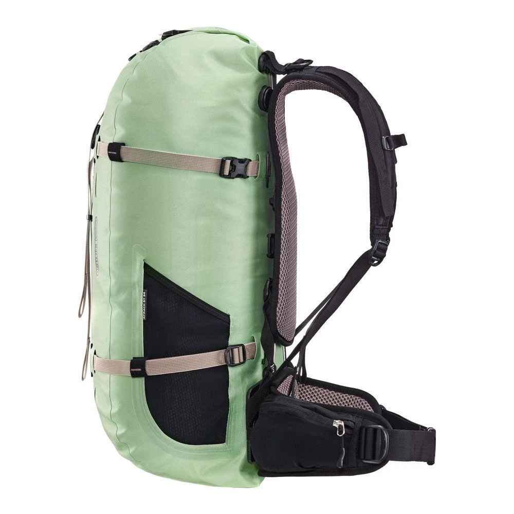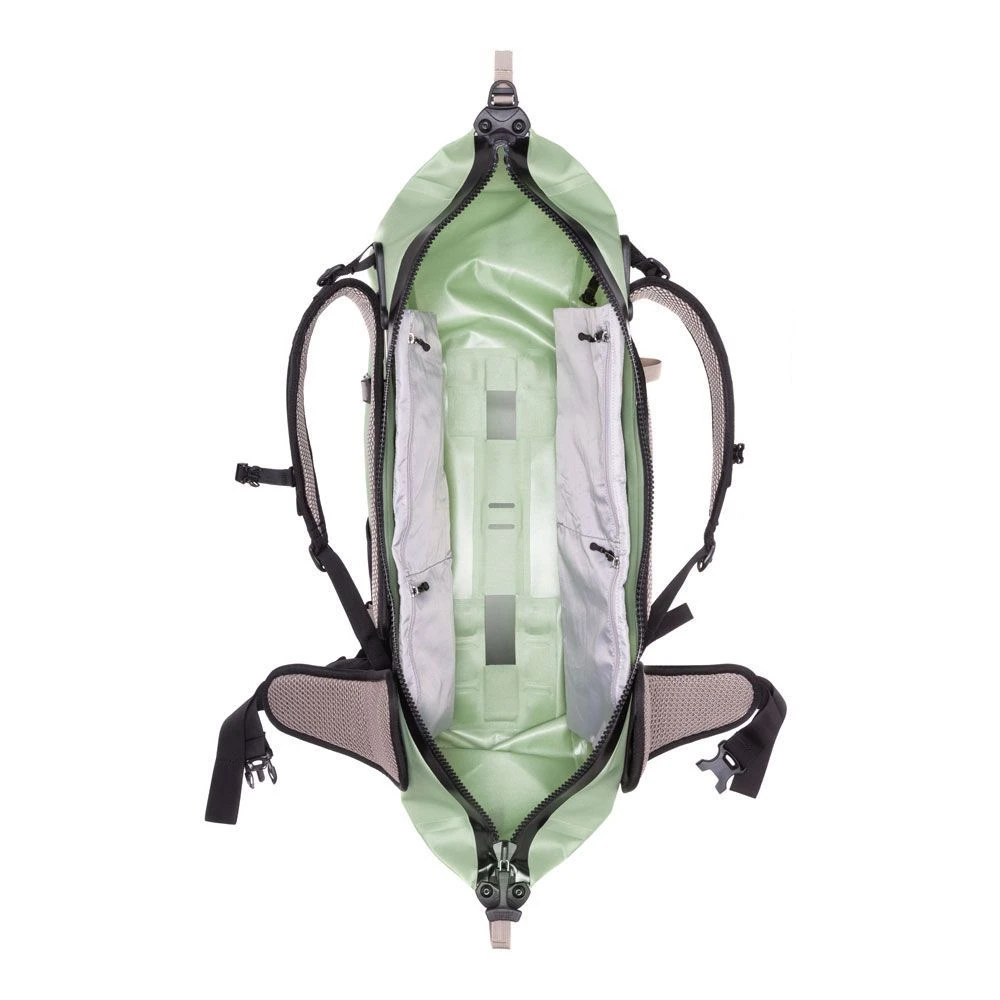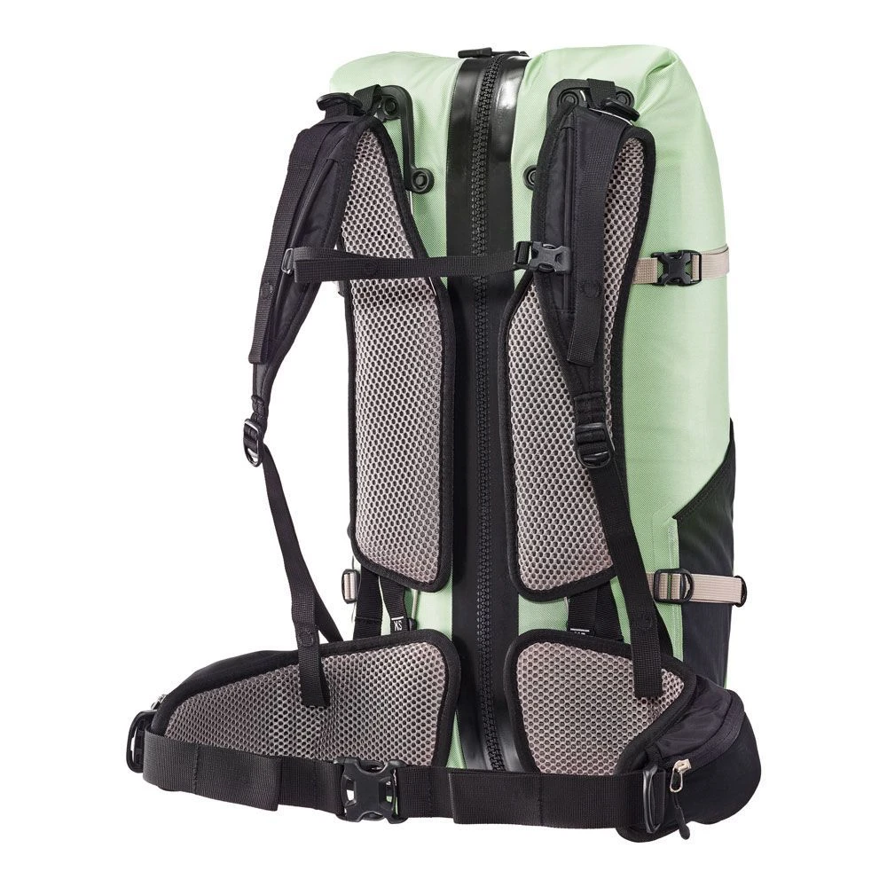 Die Produktfamilie erfährt nun mit dem Atrack ST eine konsequente Erweiterung. Der „Short Torso“ ist speziell auf die Bedürfnisse von Frauen zugeschnitten. Neben dem auf die Anatomie der Frau angepassten Schulterträger und Hüftflossen überzeugt der Atrack ST auch durch entsprechende Rückenlängen sowie einem passenden stylischem Design. Trotz der 34 Liter Volumen bietet der Atrack ST eine stufenlose Rückenlängenverstellung. Somit ist der bequeme Sitz auch bei Travellern mit kürzerem Oberkörper problemlos möglich. Im Zusammenspiel mit den atmungsaktiven Rückenauflageflächen und dem gepolsterten Hüftgurt mit integrierten Taschen sorgt die verstellbare Rückenlänge für die ideale Lastenverteilung des Gepäcks. Nicht weniger als die Definition einer neuen Rucksackkategorie, das ist der Anspruch, mit dem die Produktfamilie der Atracks von ORTLIEB entwickelt wurde. Der IP67-wasserdichte Active Travel Rucksack Atrack ST passt sich jeder Reisesituation und sportlichen Aktivität flexibel an.