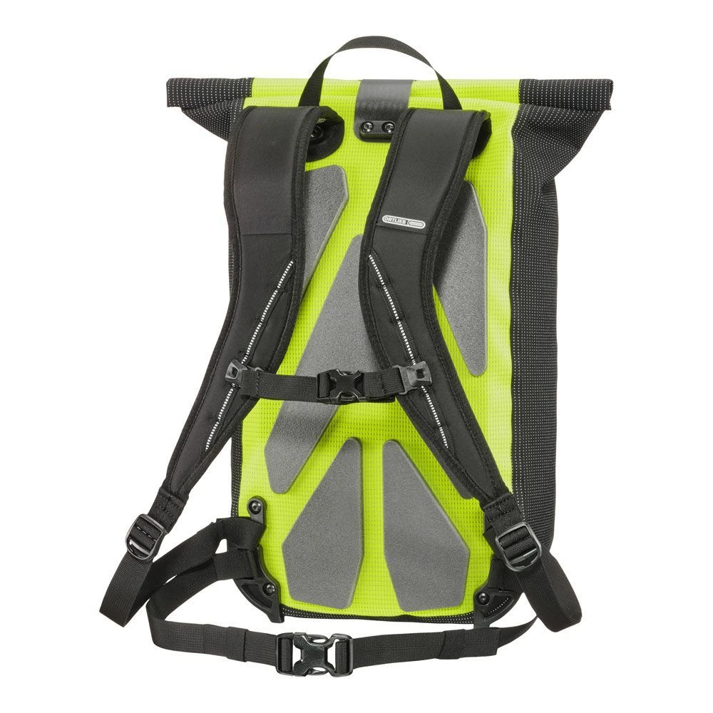 Mit einem Volumen von 23 L ist der Velocity High Visibility groß genug für alles, was du an einem Tag in der Schule, an der Uni oder im Job brauchst. Er verfügt sogar über ein gepolstertes Innenfach für dein Notebook oder Tablet. Was ihn ganz besonders macht, ist das Reflexgarn, das in das PU-beschichtete Gewebe eingearbeitet ist. Dadurch reflektiert der Rucksack, sobald er von Scheinwerfern angestrahlt wird. Das Material leuchtet gut sichtbar in der Dunkelheit – und erhöht so signifikant deine Sicherheit im Straßenverkehr. Selbst bei Tageslicht ist das Neongelb eine aufmerksamkeitsstarke Hingucker-Farbe. Der praktische Roll-Klettverschluss und das ergonomische Tragesystem machen den Rucksack zu einem Lieblingsstück für jeden Tag. Die Halterung am Verschluss ermöglicht das Anbringen eines zusätzlichen Rücklichts oder eines Helms.