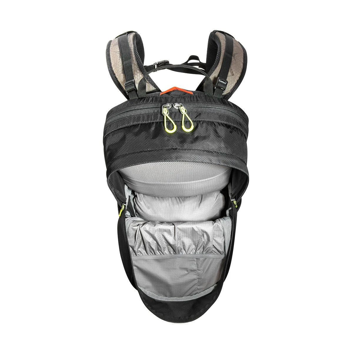 - Ergonomisch geformte, gepolsterte und belüftete Schultergurte