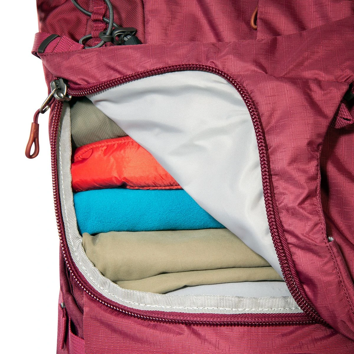 Ruckzuck gepackt ist der Damen-Rucksack dank der großen umlaufenden Frontöffnung und daher auch optimal für Backpacker-Reisen geeignet. Die Zweiwegereißverschlüsse erlauben unterwegs einen schnellen Zugriff auf das Gepäck. Und der Backpacker-Rucksack bietet gleich doppelten Schutz: Die abschließbaren Reißverschlussschieber verwehren Dieben den Griff ins Innere und die Regenhülle schützt vor schlechtem Wetter.