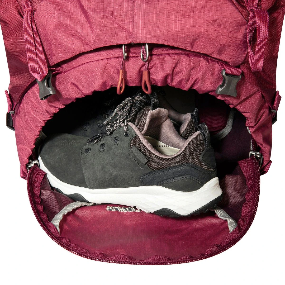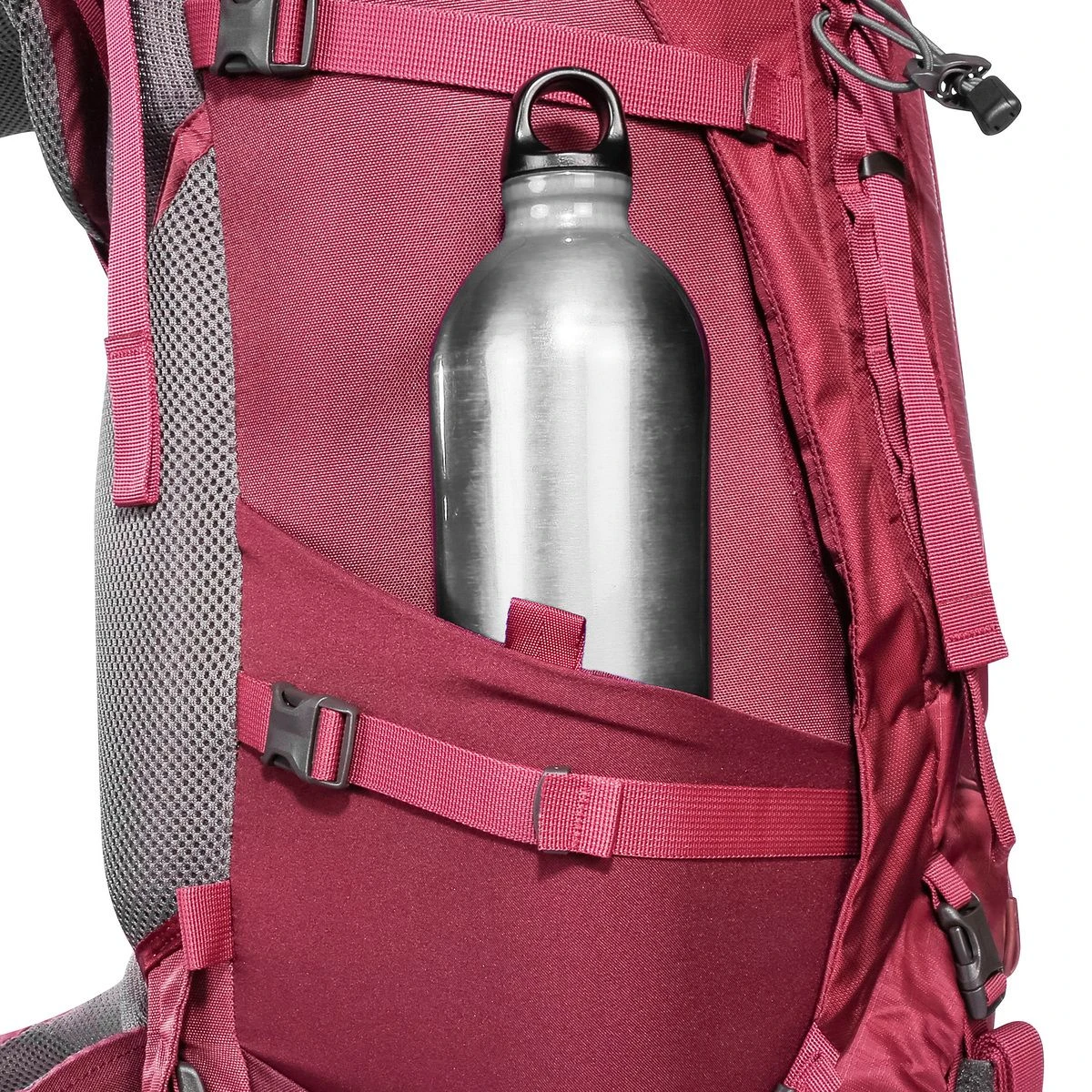 - Materialschlaufen auf der Front mit integrierter Wanderstock-/ Eisaxthalterung