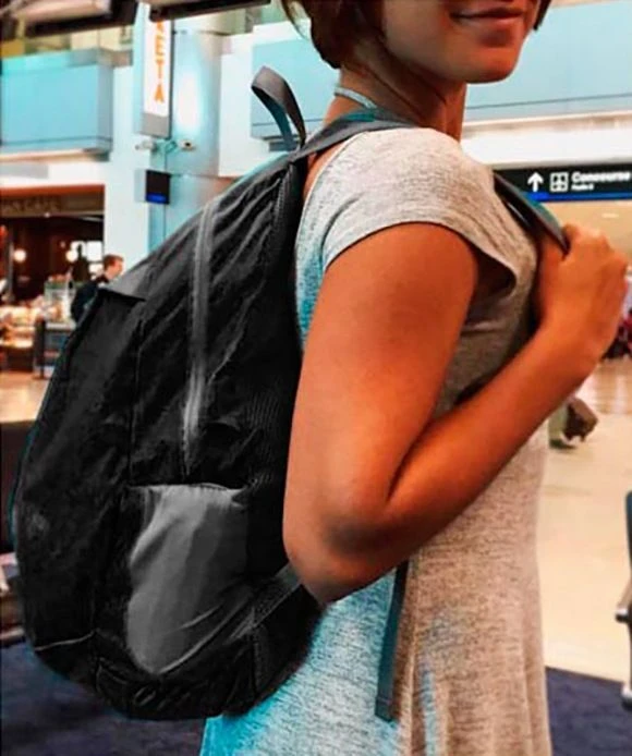 Praktischer Daypack mit integriertem Packsack und zwei Seitentaschen für Wasserflaschen. Der Daypack hat ein Hauptfach mit zwei Innentaschen, separatem Frontfach mit Handy Tasche und Audio Ausgang. Ideal für Büro, Uni, Schule und Tagestouren (Stadt oder Urlaub).