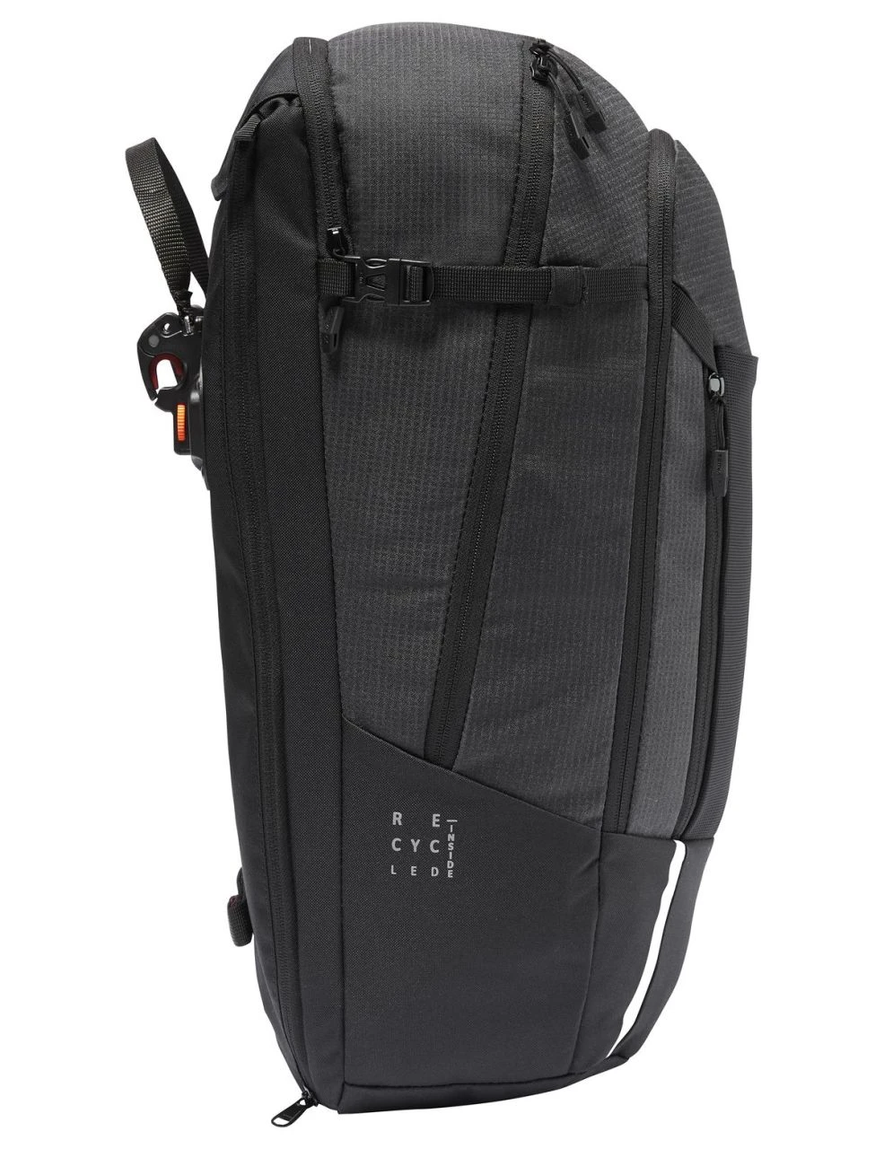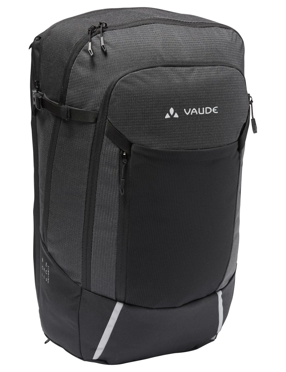 Material: Hauptstoff: 100% Polyester (recycelt); 300D Ripstop / PU coated / reflective; Second fabric – Material: 100% Polyester (recycelt); Beschichtung: 100% Polyurethan; 600D / PU coated / plain weave; Futter – Außenseite: 100% Polyester (recycelt); Beschichtung: 100% Polyurethan; 150D woven/ PU coating; Regenhülle: 100% Polyamid; 190 T Polyurethane coated.